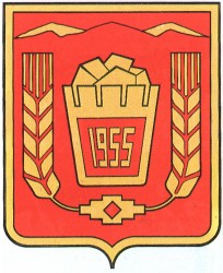 В червленом щите золотой ковш с золотой же стилизованной породой, обрамленный двумя золотыми колосьями. Колосья соединены стилизованным фрагментом национального башкирского орнамента. В вершине щита золотые контуры гор. На ковше цифры: 1955.