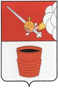 Щит пересеченный. В верхнем червленом поле выходящая из серебряного облака слева в золотом одеянии рука, держащая золотую державу и серебряный меч. В нижнем серебряном поле кадка со смолой натуральных, гнетов.