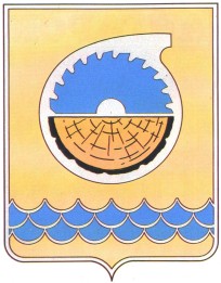 В золотом щите стилизованная зеленая реторта, обремененная стилизованными же ллзуревой циркульной пилой и срезом спиленного дерева натурального цвета. Реторта сопровождается внизу пониженным чешуйчатым волнообразным лазу-ревым поясом.