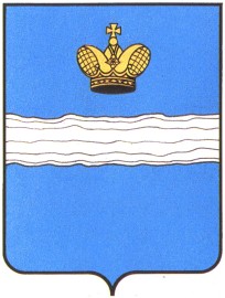 В лазуревом щите серебряный волнистый пояс, сопровождаемый вверху золотой императорской короной.