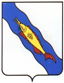 В серебряном щите волнистая лазуревая перевязь справа, обремененная золотой стерлядью с красными плавниками и глазами. Щит увенчан городской короной. За щитом два перекрещенных золотых якоря, перевитые червленой лентой с золотыми цифрами 1848 внизу.