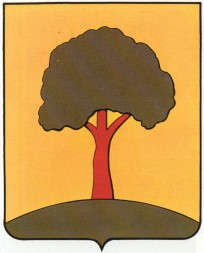 В золотом щите с зеленой оконечностью зеленая же с пурпуровым стволом липа.