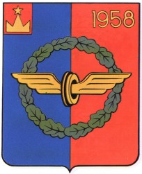 Щит рассечен лазурью и червленью. Поверх всего золотая стилизованная эмблема российских железных дорог в обрамлении венка (ожерелья) из дубовых листьев. В правой вольной части щита на червленом поле золотая стилизованная башня с золотой же звездой, в левой вольной части золотые цифры 1958.