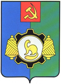 Щит рассеченный: правое поле лазуревое, левое зеленое. Поверх всего серебряный круг с сидящим золотым соболем, голова которого повернута влево, обрамленный черною с золотой окантовкой шестернею, сопровождаемою по сторонам двумя золотыми бобинами. В главе щита червленый квадрат с золотыми серпом и молотом.