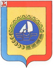 В золотом щите лазуревый круг со стилизованным серебряным парусником, корпус которого составляют литеры: БОР. Круг обрамлен зелеными стилизованными полушестерней, колосом, освой-ной ветвью. Щит обрамлен рассеченной лазурью и червленъю каймой, в правом верхнем углу которой в серебряном поле идущий червленый олень.