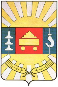 В серебряном щите золотое солнце, испускающее золотые же лучи. Поверх всего червленый пояс со стилизованной золотой вагонеткой, сопровождаемой по сторонам в лазуревых боковинах пояса справа серебряной гирляндой изоляторов, слева серебряным же фрагментом грузового крана. В подножии щита два золотых колоса с перекрещенными стеблями.