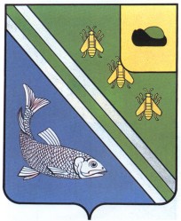 В скошенном зеленом и лазоревом щите продольно дважды разделенная серебряная зеленая и серебряная перевязь справа, сопровождаемая вверху тремя золотыми телами в правую перевязь, а внизу серебряной рыбой с поднятым хвостом в пояс влево. В левой вольной части в золотом поле зеленая княжеская шапка, отороченная черным мехом.