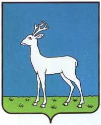В лазуревом щите серебряная дикая коза, стоящая на зеленом подножии.
