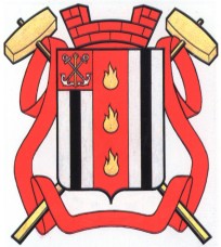 В серебряном щите червленый столб, обремененный тремя золотыми пламенами с сопровождаемый двумя черными узкими столбами. В правой вольной части щита герб Санкт-Петербурга. Щит увенчан червленою башенною о двух зубцах, короною и окружен двумя золотыми молотками, соединенными александровскою лентою.