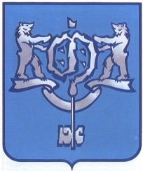В лазуревом ирапе серебряный ключ в столб, ушко которого представляет собой стилизованный цветок орнамента исторической керамики и которое поддерживают два серебряных медведя, стоящих на серебряной же ленте.