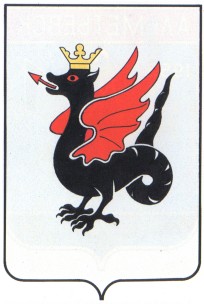 В серебряном щите черный, увенчанный золотой короной дракон. Язык и крылья червленые.