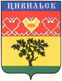 В золотом щите дуб с зелеными листьями и натурального цвета стволом на зеленом подножии. В завершенной главе щита — чувашский орнамент: на червленом поле серебряные фигуры, 6 средней цифры 1589. В лазуревой вершине щита червлеными литерами наименование города.